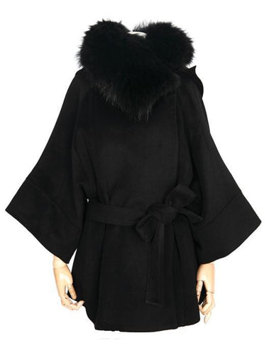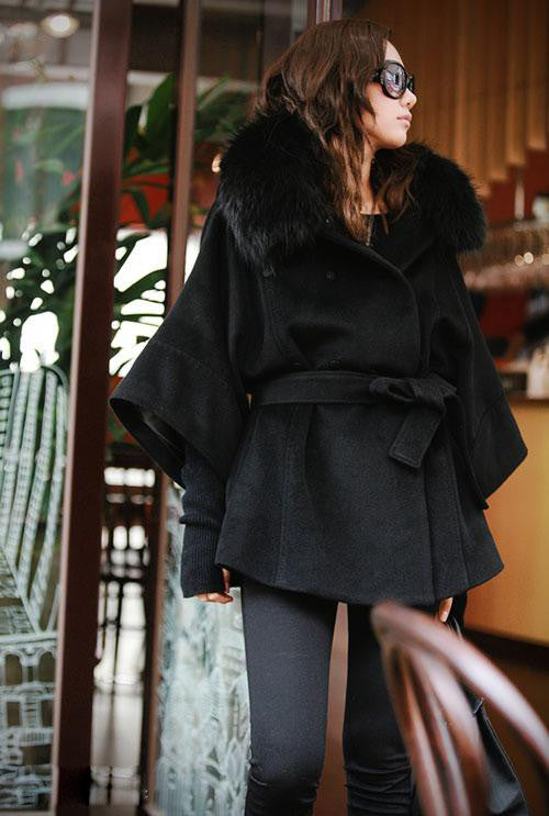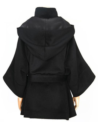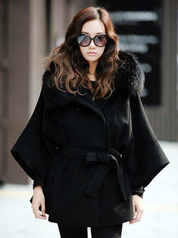 Women's Casual Black Turn-down Collar Solid Woolen Coat